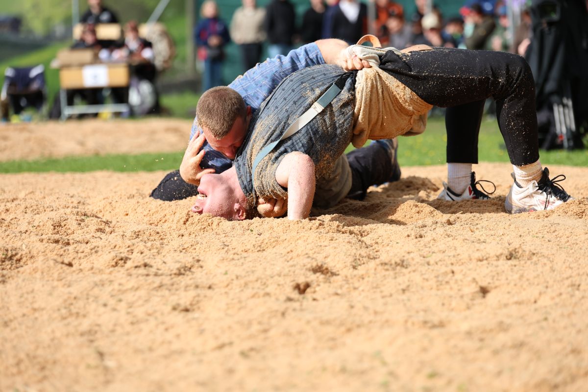Marco Fankhauser, Schüpfheim, gewinnt gegen Carlo von Rickenbach, Hasle, nach 1.26 Minuten mit Wyberhaken und überdrehen am Boden mit Kniekehlengriff.